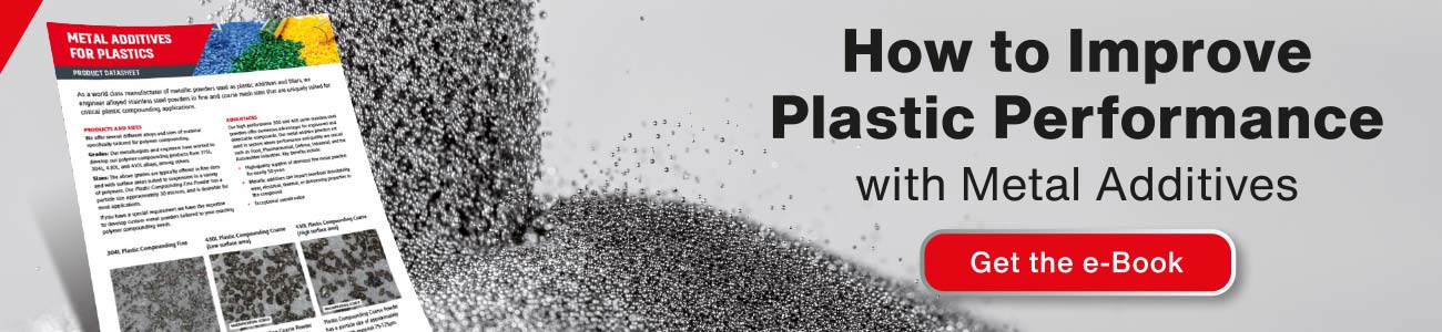 As a world class manufacturer of metallic powders used as plastic additives and fillers, we engineer alloyed stainless steel powders in fine and coarse mesh sizes. Our metal additives are uniquely suited for critical plastic and advanced polymer compounding applications.