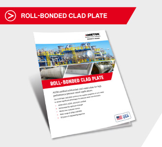 AMETEKs clad materials are available in standard widths to 120” lengths to 480” and thickness ranging from 3/16” to 1”. Cladding on steel backing can be supplied in a range of thicknesses from 5 to 40% of the overall material thickness.