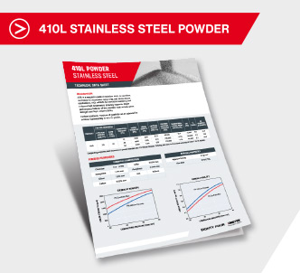 Stainless steel powder 410L (UNS S41003) is a magnetic grade of stainless steel exhibiting strong corrosion resistance and high temperature sintering response as well as good green strength and high compressibility.